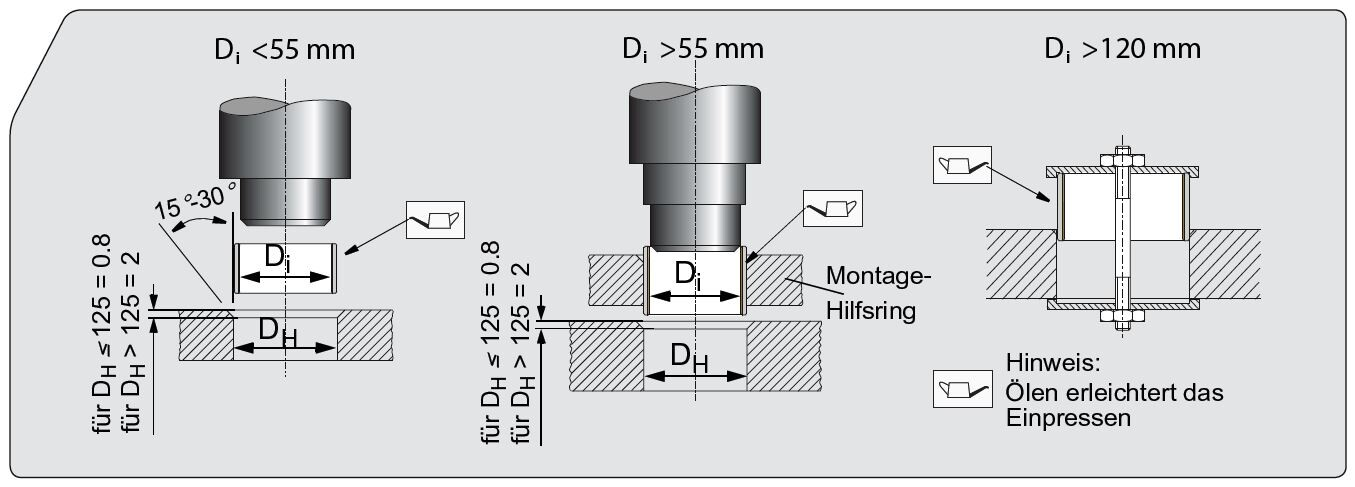 Mit ihrem einteiligen, kompakten Aufbau lassen sich die Gleitlagerbuchsen im Vergleich zu beispielsweise Wälzlagern oder anderen Lagermodulen sehr einfach im Gehäuse montieren. Beim Einbau sind Sachkenntnis und Sorgfalt unerlässlich, um eine lange Lebensdauer der Lager zu gewährleisten.