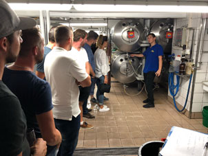 Nach der Rückkehr an Land besuchten wir als weitere Überraschung die Bierbrauerei Wädenswil, wo das bekannte und beliebte "Wädi-Bräu" und seine Spezialitäten gebraut wird. Der Betriebsleiter der Brauerei erläuterte uns die spannenden Prozesse des Bierbrauens. Dabei konnten wir auch gleich bei verschiedenen Arbeiten selber Hand anlegen. Als krönender Abschluss folgte ein wunderbares Nachtessen vor Ort, und selbstverständlich liessen wir diesen eindrücklichen Tag bei einem bekömmlichen Wädenswiler Bier gemütlich ausklingen.